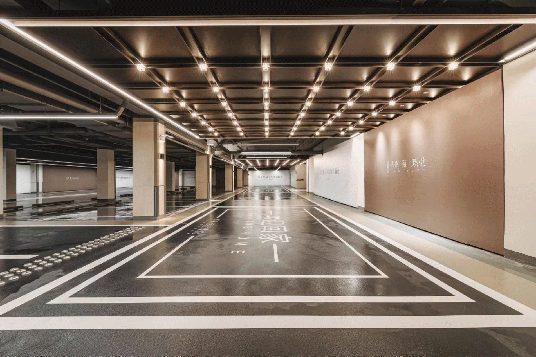 地库内部整体典雅金色搭配简洁线条,更有矩阵式星空顶行列式排布上方,将东方秩序之美从奢宅、园林贯穿至地库。