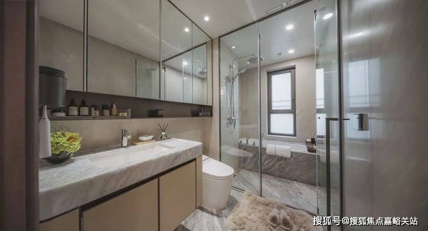 全屋智能马桶交付,主卫配置唯宝一体马桶,浴缸也为交付标准。主卫恒温龙头套装、浴缸龙头、水龙头均选用德国高仪,是五星酒店御用的世界领先品牌,真是大手笔!
