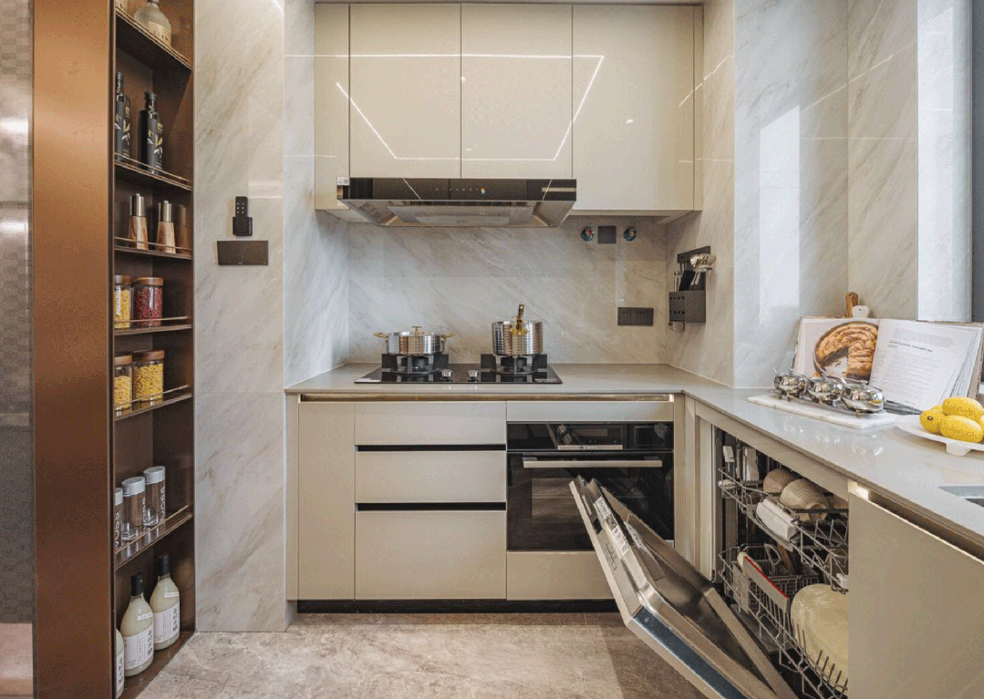 厨房精装产品的使用上,保利精选方太高端系三件套,有效解决中式烹饪过程的油烟烦恼,例如面材采用防油膜更便于清洁 ;手势开机模式令烹饪更便利,定制更适合东方家庭的幸福智慧厨房。