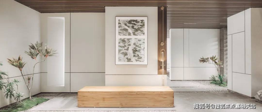 充满仪式感的归家线路;地上入户大堂采用中式经典构图方法——框景,打造未进门,先见景的效果。中国人一直讲究,生活中处处有景。框景的工艺就是能做到从任何一个框望过去都是景色,角度不同景色也不同,一步一景的效果。