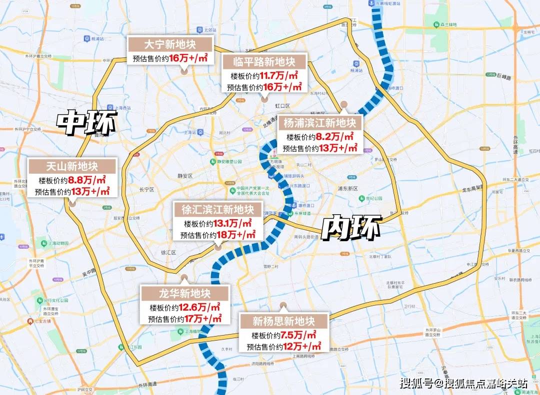 当然,还有核心城区:约12.6-13万楼板价的徐汇滨江、溢价率约38.2%的临平路、溢价率约40%+装修上限的新杨思...