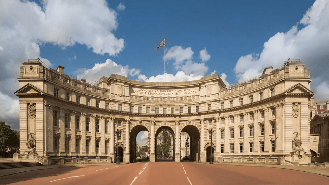“水师提督门(Admiralty Arch)是英国伦敦的一座纪念性建筑物,建于1912年,按英王爱德华七世之命建造的,以纪念王母,维多利亚女王。