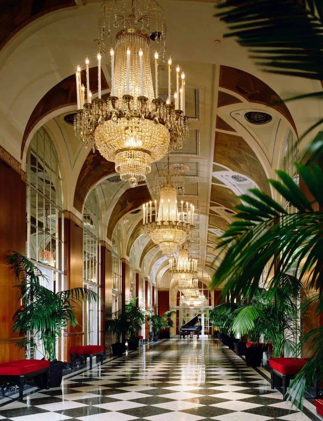 后来酒店合并,通过一条300米的走廊连通,成为华尔道夫-阿斯托里亚酒店,是彼时当之无愧的世界上最大的豪华酒店,那条300米的长廊也是熠熠生辉,身穿孔雀毛装饰礼服的贵妇人行走其间,摇曳生姿。由此诞生了一个动人的名字——“孔雀廊”(Peacock Alley),也是现在华尔道夫酒店传承至今一大特色。PS:华尔道夫的来源有点家长里短,有兴趣可以查阅资料。