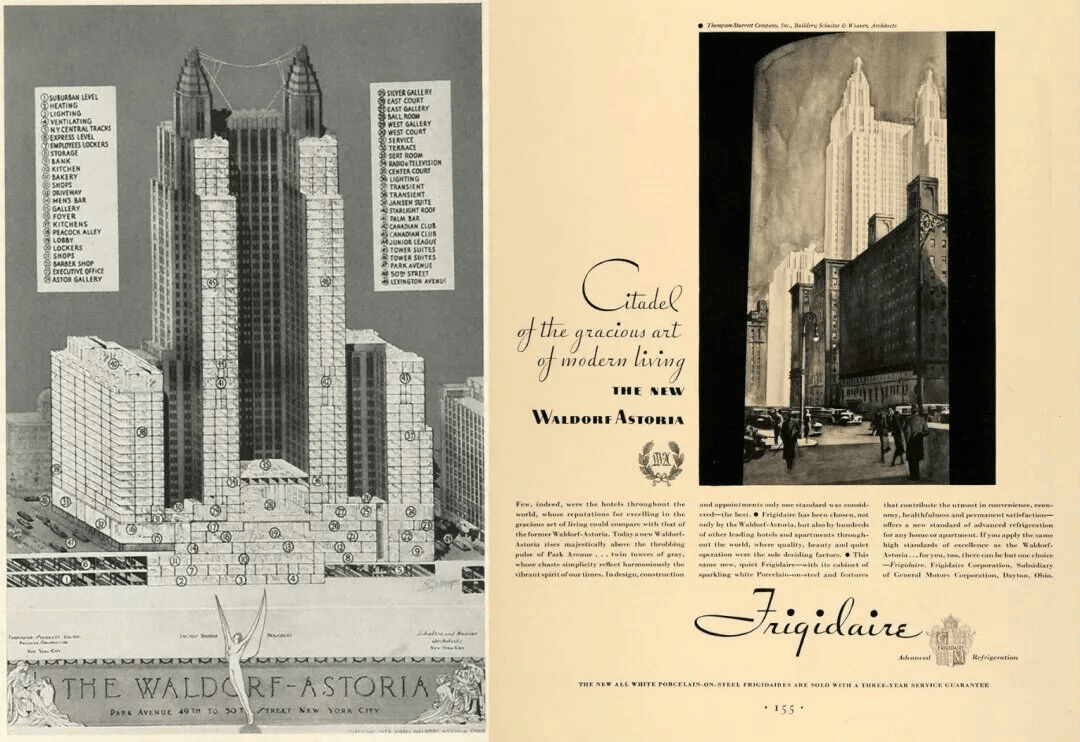 后来酒店为了给帝国大厦腾挪位置而被拆除,1928年,新的华尔道夫酒店在公园大道新址上重新建成,横跨49街至50街的整个街区,楼高42层,是世界上第一家摩天大楼酒店,也是当时世界上最高最大的酒店。