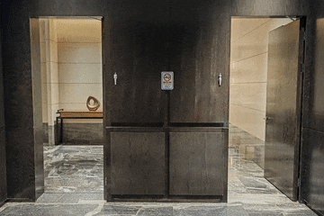 这是11月1日在广西南宁一家酒店内拍摄的公共卫生间,门口只有较小的图形用于分辨性别。