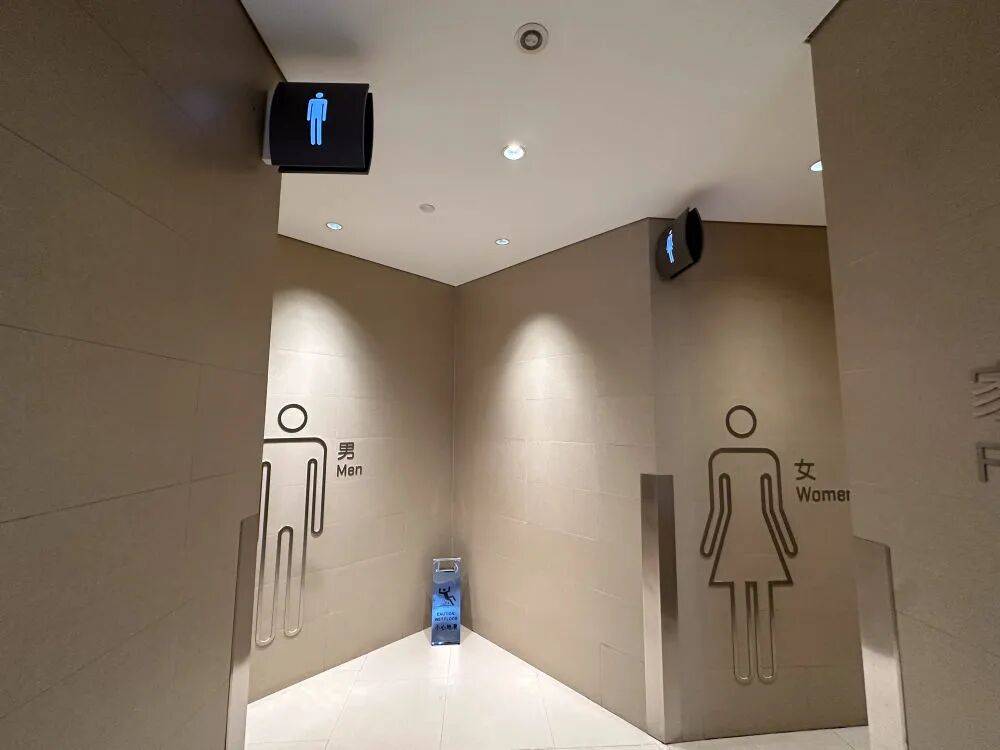 这是11月1日在广西南宁一家酒店内拍摄的公共卫生间,门口只有较小的图形用于分辨性别。