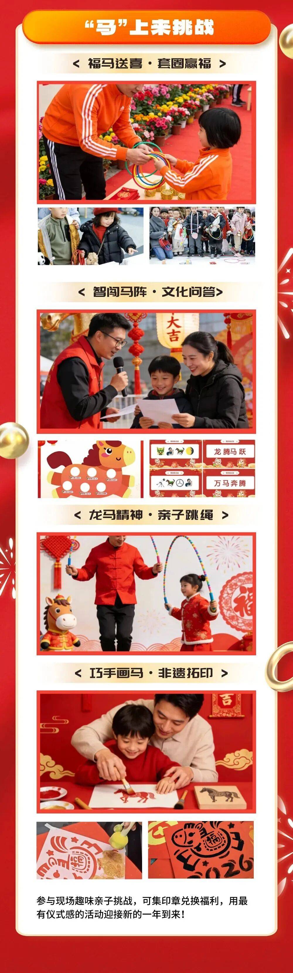 本次活动精心打造 “跑马+文旅” 深度体验线路,将十里长冲亲子谷等多元文旅业态串联成珠。现场还会有套圈、智力问答、亲子跳绳等各项趣味亲子挑战,可以集章兑换福利。