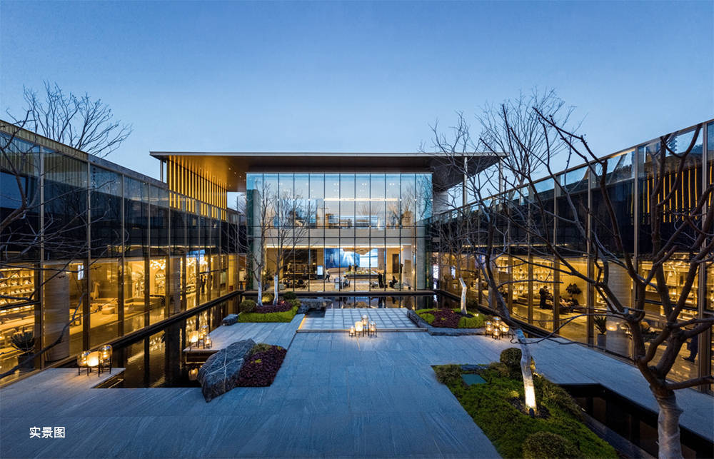 对标“apple store”设计美学,约12M通高玻璃幕墙,打破空间界限,配合中心水景庭院,景观与社交无界渗透,形成立体落差下沉会所;内部涵盖四点半课堂、瑜伽室、定制SPA、家庭厅、咖啡吧等,覆盖日常高频社交场景。