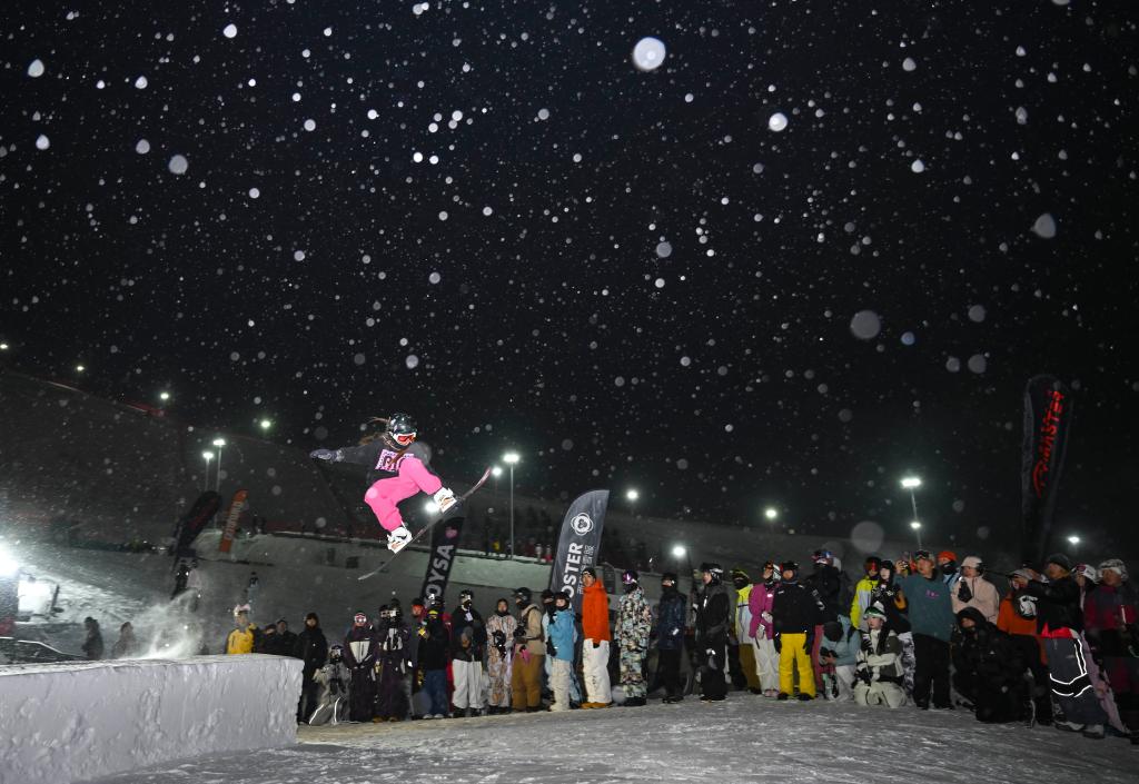 1月28日,除夕当天,雪友在将军山国际滑雪度假区的滑雪公园飞越跳台。