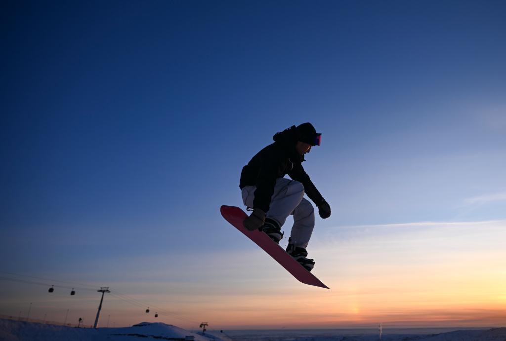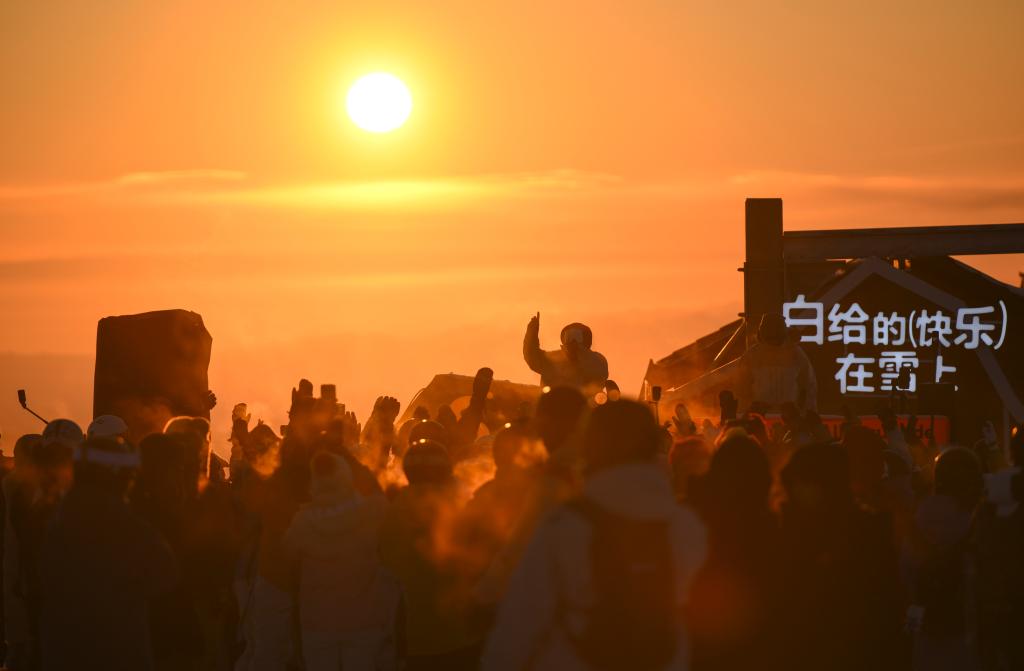 1月24日,寒潮来袭,最低温降至零下30摄氏度左右,“夕阳派对”在阿勒泰将军山国际滑雪度假区的山顶区域如期上演。